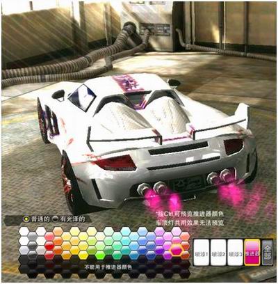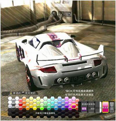 (1) 进入城镇的商店,选择“装饰商店”,在喷漆位置选中“推进器”,就可以看到许多可供选择推进器颜色。