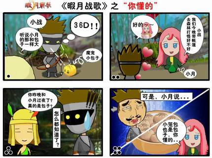 “你懂的”的这一句话最近是十分的火热,迅速上升为网络流行语。而《暇月战歌》的这一玩家正是巧妙的运用了这一点,将这一火热之语运用到四格的台词之中。当酷酷的小战遇上了可爱的小月,两人肯定是要擦出一些火花的。