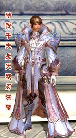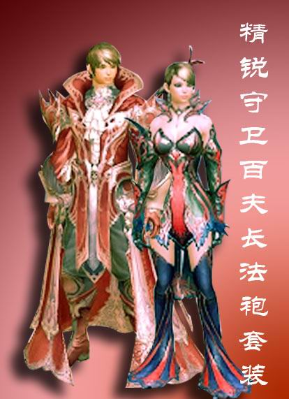 精锐守卫百夫长套装我们仍然以法袍系举例,这次的模特是男天族和女魔族魔道。您问为什么总要拿法袍系举例?很简单啊,法袍系款式看起来雍容华丽,视觉冲击力强!