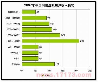 廉价,或许是网络游戏近年来受到欢迎的另一重要因素,虽然专家、学者一直声称中国的经济的飞速发展,GDP每年都保持在10%的高速增长,但是这些依靠基础建设、**工程堆砌起来的GDP并没有改善人们的生活质量,相反随着通货膨胀的日益严重,越来越多的人感觉到生活压力逐渐增大,生活质量急剧下降,在无奈之下,只能选择网络游戏这一相对廉价的娱乐方式。对比一下2007年与2009年网游用户的收入比例便能看出端倪。