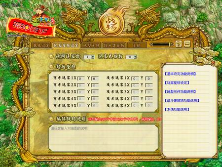 “大汉帝国”版本中的战场自制系统,是同类型网络游戏中的首创,SLG策略战棋游戏中首次加入即时战略性质的操作!在之前的游戏中,玩家朋友能够通过军团国战赢得城池,而军团长就会作为太守有管理城池的权利。在新版开启之后当上太守的玩家将可使用“战场地图自制”功能,每一个军团占领之城池,该城太守将可上传一张自编的战斗地图,上传地图后,全服务器玩家将可进入此张地图进行对战!
