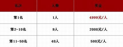 活动时间:2009年12月11日-2010年1月10日活动奖励:总奖金100万,先提先得,提完即止!每轮推广王,最高奖金4999元!