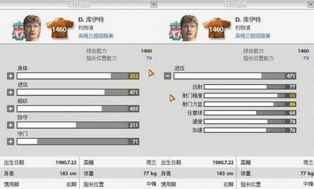 我们还是从比赛开始说起,其实本场比赛的开局对利物浦来说应该是梦幻的,上半场第41分钟,荷兰前锋库伊特就用禁区内的一脚捅射为球队取得了领先,当时奥雷里奥任意球传中,阿森纳门将勉强将球挡出但解围不远,库伊特门前10码胸部停球后机敏的抓住了转瞬即逝的起脚空挡,球从阿森纳后卫维尔马伦裆下穿过进网,《FIFA online 2》中的库伊特其他项目平平,出了252点以体能突出的身体素质外,其他方面这名前锋最值得称道的也就是禁区内的敏锐嗅觉和比较精湛的射门脚法了,这恰恰是库伊特游戏里最强的数值,90的射门精度用在这个进球上恰如其分。