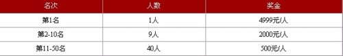 前50名推广员可获得的奖励如下: