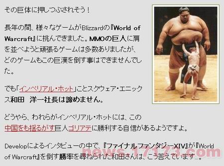 日前,日本史可威尔艾尼克斯(SE)公司和田洋一社长在接受采访时表示,《最终幻想14》将打败《魔兽世界(专区 视频)》。对此,不仅日本玩家觉得不可能,就连日本游戏网站也在质疑其言论。