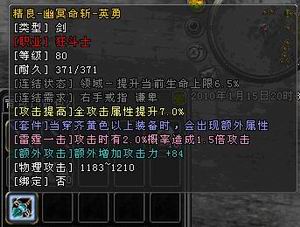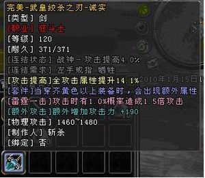 通过以下两件装备的对比,我们不难看出,图一中的80级稀有武器[精良的幽冥命斩]在属性上,与120级所锻造出来的完美品质武器武皇绞杀之刃相差无几。