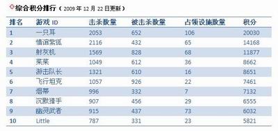排名 游戏ID 击杀数量 被击杀数量 占领设施数量 积分
