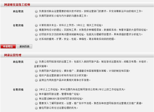 记者在招聘页面看到,目前招聘网游研发高级工程师与网游运营经理。