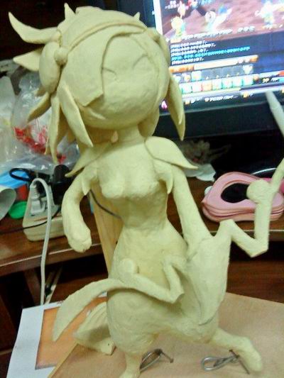 笔者对这些雕塑如何制作出来比较感兴趣。于是就询问了制作这些雕塑的玩家末末、夏么么、小赖、小塞子。从他们口中“套”出了制作方法:先用钢丝和绳子制作模型进行定型,然后在模型架上堆泥。说说简单,做起来可是一件非常花功夫的事情哦,接下来给大家看看没有上油的半成品: