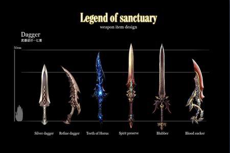 《圣域传说》的武器分为单手剑、双手剑、双剑、斧、双手斧、双斧、匕首、弓和法杖。