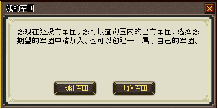 在系统菜单中选择军团,您可以创建或加入已有军团。