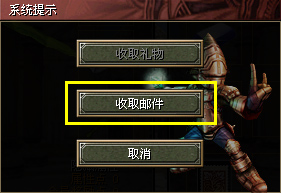 收到邮件的玩家,会在人物信息栏出现一个“箱子”的图标,同时系统也会提示玩家收取邮件。