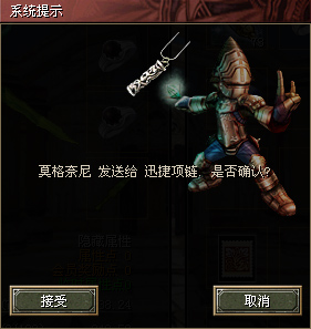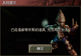 收货人可以到【仓库】中点击【收取礼物】,出现对话框点击中间的【收取邮件】即可领取邮件(如果有邮件到,则【收取邮件】栏的字是白色的)。这是系统会提示,是哪位朋友送给您礼物以及礼物名称。点击“接受”,物品直接放入您的仓库。