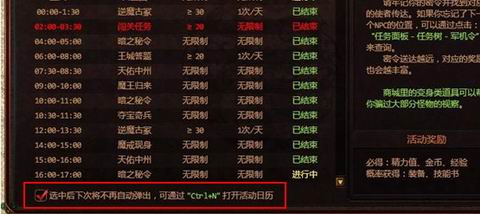2.玩家登陆游戏后,活动课程表将自动弹出(可选择性地开关此功能)。时时提醒玩家最重要最有趣的游戏活动,使玩家不会错过中州的每一份精彩。