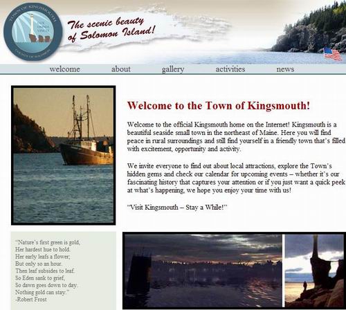 乍看之下,上面这张图只是一个名为“金次茅兹”(Kingsmouth)的海滨小镇宣传网站,小镇位于所罗门群岛的东北方,始建于于16世纪,现在拥有1547位市民。里面写满了小镇的历史、人文及现状,还有小镇各处的风景、观光指南等等。