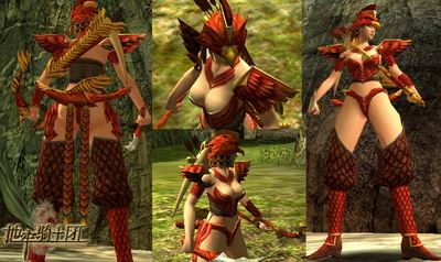 鲜红如血色的朱雀套装,穿在辣妹弓箭手的身上更显性感妖娆。大家一定好奇这样引人注目的颜色,这样散发着妖异魅力的套装如果穿在剑士或者铁匠身上又是怎样一番风情吧?那就只有自己去试试看咯。