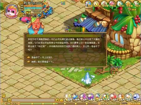 随着春节的临近,梦之都的居民们开始置办年货,可恶的老鼠们也把粮仓当成了过年的圣地,成群结队地侵入粮仓中偷吃和糟蹋粮食。为了应对鼠害,保卫物资安全越冬,梦之都居民有一个和谐美满的新春佳节,妖怪世界管理委员会派遣粮仓管理员组织防御鼠害的斗争。这项艰巨的任务需要更多的妖怪居民来帮助粮仓消灭偷粮的老鼠,粮仓管理员会每天等在粮仓门口,等待每个梦之都居民前来参与灭鼠害斗争,他为每个妖怪宝宝提供5次“鼠口夺粮任务”的机会,而做为回报,妖怪宝宝们每次完成任务都可以从粮食商人们处获得定制晶石,并在自己工房里加工定制商品卖给粮食商人获得丰富的妖怪币的奖励。