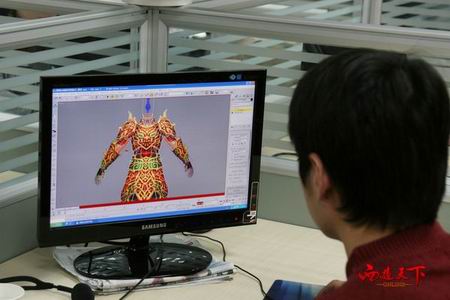 首先参观的研发部,各位技术精英们都在紧张并有条不紊的工作中。其实现在我们所看到的《西游天下》还远远不是最后成型的游戏,还有很多新系统在做最后测试和修改。看着展示在眼前的游戏画面,小编我内心非常激动,自己算是全国为数不多的可以直接看到开发小组电脑里作品的玩家了吧!