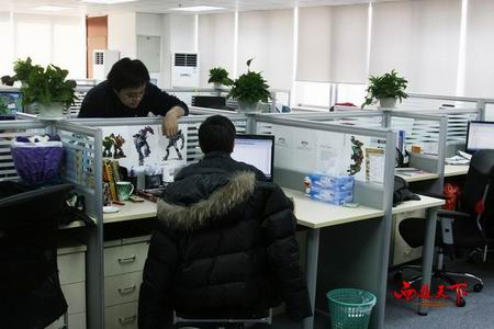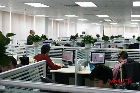 首先参观的研发部,各位技术精英们都在紧张并有条不紊的工作中。其实现在我们所看到的《西游天下》还远远不是最后成型的游戏,还有很多新系统在做最后测试和修改。看着展示在眼前的游戏画面,小编我内心非常激动,自己算是全国为数不多的可以直接看到开发小组电脑里作品的玩家了吧!