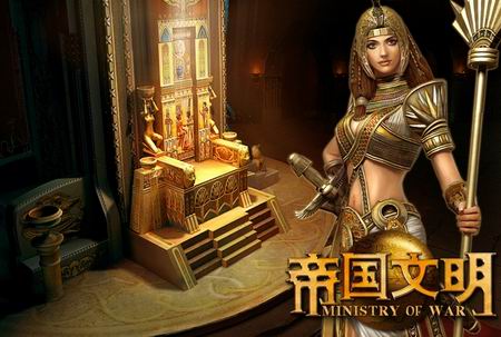 游戏登录界面,帝国战士为勇敢的心而战。 玩家需要从罗马、埃及、波斯和中国4大文明中择其一,此图可以看到埃及王座的华丽。想起了克里奥佩特拉-_-《航海世纪web》 航海经典的全新演绎