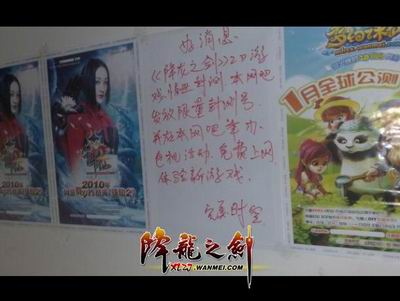 1月28日,全国27省市合计100家大型网吧早早地挂起了《降龙之剑》的大幅海报。官方举办的“非常降龙剑,七天还不够”主题活动将在这里迎来高潮!