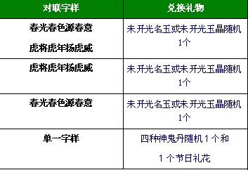 玩家收集对联字样可以在【财神】处换取宝玉奖励,奖励领取次数不限。