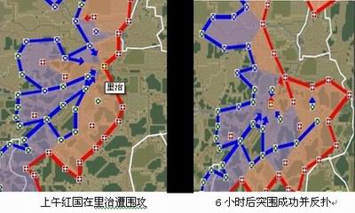 昨日,联盟军突然把多个装甲旅3000多辆坦克从四个方向调集到红国里治的边境线上,通过分割包围来突袭里治,红国派出多个坦克师共800多辆坦克展开突围,里治基地地面坦克横冲直撞,经过六小时的奋战,红国坦克顺利突围 ,将联盟军赶出里治并再接再厉把斯普蒙特和南仁德夺回来了,重现二战经典——阿登突出部战役。