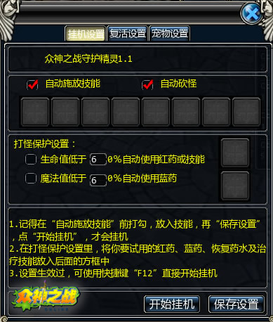 你只需用鼠标轻轻点击屏幕右下的“挂机”按钮,或者敲击一下键盘上的“F12”键……即可轻松享受《众神之战》自动挂机带来的便捷体验,成神之路其实就这么简单哦!守护精灵的四大特色,且听我细细道来: