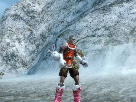 礼包内容:各职业糖果武器(3天/1件)、各职业红色礼服外套(3天/1件)、各职业年糕头盔(3天/1件)、各职业巧克力护腿(3天/1件)、各职业糖果靴子(3天/1件)、各职业白兔护手(3天/1件)