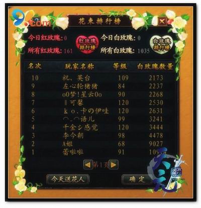 爱她,就送她鲜花吧!《天元》特别设计“送花系统”,每位男玩家每天可向一位心仪的女玩家送出鲜花!怕一朵鲜花不够表明心意?没关系,在今天会有一位“花仙子”专门提供鲜花种子,收获时不但有机会拿到各种礼包,还有一定几率获得额外的送花名额!哪位女玩家会得到最多的鲜花,成为本服“人气女王”?大家拭目以待吧!