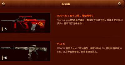 AUG-R:这款枪支全身如火一般的红色,还散发出金色的光芒不禁令人赞叹于它的王者气魄。此枪且来头不小,是隶属于SteryAugA1的限量加强型。且不说它那特殊枪体外观,就谈那迅速的装枪速度,更加利于连续杀敌。
