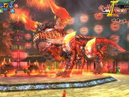 火红的灯笼高高挂,为新年增添了许多喜庆的气氛。我作为《武林群侠传2》的一只年兽,奉玉皇大帝之命在新春佳节期间来到凡间传递祝福,与群侠一起狂欢庆贺。虽然我也因此被扁的不轻,但我却是痛并快乐着,因为能给大家带来欢笑是我最幸福的事情。