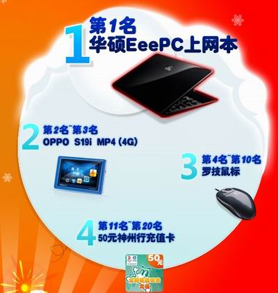 豪华上网本是现代一族们必备产品。现在玩家只需使用面值100元、300元、500元神州行充值卡对《梦幻龙族》帐号进行成功充值就有机会获得哦。参与“幸运大转盘”抽奖活动,并通过幸运积分便有机会获取丰厚实物大奖!