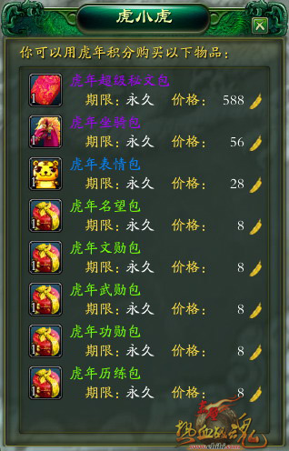 等级达到16级的玩家每日点卯后,每累计在线1小时即可收获8点积分,最多可累计3小时,即每日玩家可收获24点新年积分。这里需注意的是,玩家如进行摆摊将不能收获积分,若中途下线重新登陆,时间将进行累计。除每日点卯外,玩家每日19:30-20:30可前往新春使者NPC【虎小虎(长安146,331)】处领取“虎年有喜”任务,完成任务后可收获8点积分,积分将在人物属性的声望栏里显示,玩家可在游戏同时随时查看自己的积分,快速免费获得“秘文·豪(专属)”。