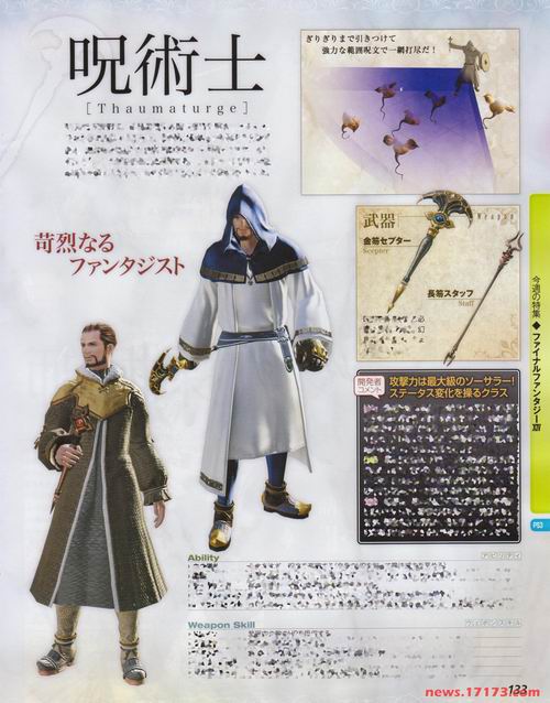 咒术士,使用权杖(Scepter)和法杖(Staff)战斗,擅长特效魔法和范围魔法
