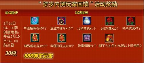 活动参与条件:在3月14日24点前创建角色,并在3月19日14点前将角色等级提升至30级;