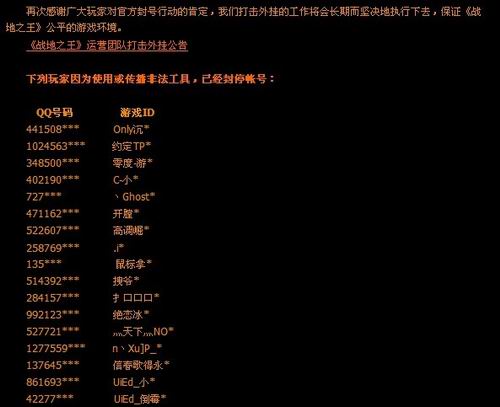 战地黑名单之封号公告