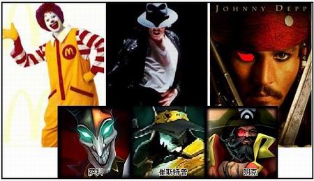 有爱的麦当劳叔叔,集万千宠爱于一身的MJ,还有万年黑眼圈超MAN的虎克船长。这等气场,可谓老少通吃,的确是最视觉系的一组对比。