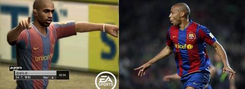 看看巴塞罗那的亨利在《FIFA online 2》里的庆祝动作,几乎和现实中如出一辙,购买了庆祝动作道具后,玩家就有机会见到亨利的标准庆祝方式了。