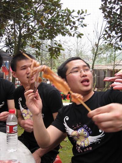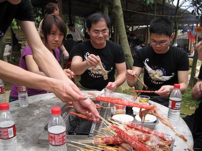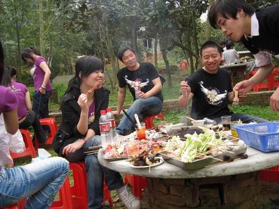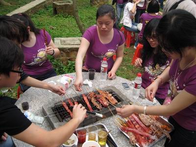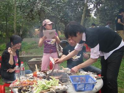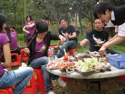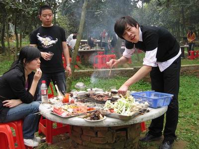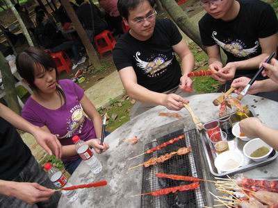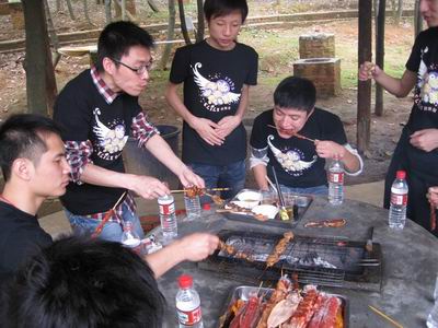 午餐时,玩家一起享受DIY烧烤的乐趣,比拼烹饪技巧,一些17173粉丝们趁此机会向工作人员“真心表白”,如此的亲密接触让平时大方的版主和编辑们也变得害羞起来。玩家橙子说:“好久都没去过户外了,玩游戏这么多年第一次和这么多玩家在‘野外PK’。希望17173越办越好,下次网聚别忘记留我个位置!”