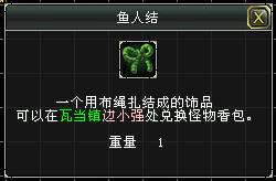 珍爱生命 远离鱼人结鱼人结,一个只会在近期才会出现的诡异道具,说它诡异,是因为其与鱼人没有任何关系。相反,倒是与瓦当镇那个深藏不漏的孩童,边小强有着莫大的联系。偏偏如今,所有10级以上玩家只要在野外击杀怪物,就有机会获得鱼人结。一个拾取道具的功夫,埋下去却是一场冤冤相报的无尽杯具……