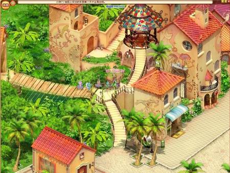 碧海岛南风平原每座岛屿上的城市风格都不相同,有的充满欧陆风情,比如翡翠岛的椰树镇。这里也是玩家第一次进入游戏就将访问的地方。 翡翠岛椰树镇欧式涂鸦建筑这是处处绿意盎然的云蒙岛,也是精灵一族的家园。精灵们热爱大自然,并从自然中吸取力量。看他们的房屋,都带着浓浓的植物色彩。 云蒙岛精灵家园比哈岛是一座充满中亚沙漠风情的岛屿,在岛的深处矗立着古老的玛雅文明遗迹——马丘比丘神庙。据说神庙的地下有着通往海底城市遗迹的入口,但很多去寻宝的人都是有来无回。