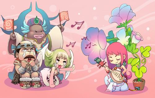 曾荣获2009CGDA最佳音乐奖的《QQ幻想世界》在配乐上是由著名世界音乐大师陈彤亲自操刀,根据各个游戏场景的不同画面风格精心打造的。游戏整体曲风上华美、浪漫、大气、悠扬,堪称天籁。图片中小雪嫣仅凭着一把琵琶的弹奏便感动得众人落泪,在幽默夸张之余也着实能体现出《QQ幻想世界》经典配乐的实力所在。