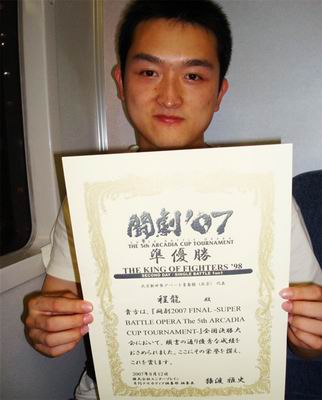 他是程龙,武汉人,日本斗剧07KOF98项目亚军,现在的职业是电玩连锁店街机事业部经理。已近大叔年龄的程龙大哥,略显发福的脸上已经没有了当年参加斗剧大赛时的义气分发,但多了几分成熟和稳健。谈起自己的游戏历程和参加斗剧比赛的经历时,又仿佛历历在目。