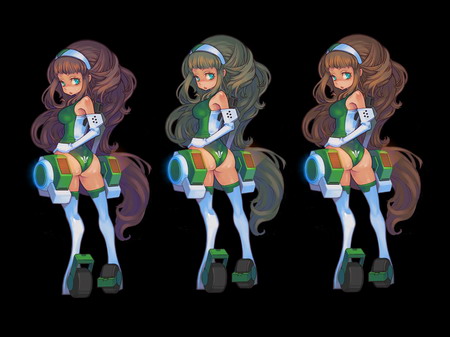 看来作者对这幅作品也颇费心血,经过多个版本的草稿之后才终于塑造出如此萌娘。不过,草稿中的贫乳棉花娘与成品虽然难以抗衡,但却也别有一番韵味!