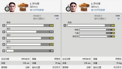 造成西索科红牌下场的国米老队长萨内蒂可真是足球运动员中的“铁人”了。在国米效力已经效力了15个春秋的萨队在《FIFA online 2》中数值仍然居高不下,483点的组织和319点的防守始终是世界级球星的数值。但是37岁的老将,还拥有86的体能,85的力量和89的稳定性,这在足坛也不多见。《FIFA online 2》的玩家们如果能拥有萨队,是多么幸福的一件事啊。