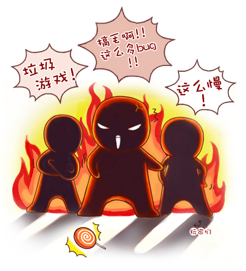 玩家又何尝不天真呢?玩家们总以为GM就是神,可以翻天覆地,点石成金,秒杀一切。但是,你见过没有GM查询工具的游戏吗?这意味着要给玩家发放奖品只有靠看线上玩家名单一个个找过去。你见过GM查询列表不能复制的游戏吗?这意味着出现一个火星文id的玩家GM就可以泪奔了。你见过人数达到一定数量服务器就会重启的游戏吗?你知道有连职业技能书都放在商城而且还死不肯修改的游戏策划吗?你遇到过修改BUG比私服还慢的程序吗?你不知道。不过玩家还有运营可以骂骂出气,而广大的运营人员就只有在角落划圈圈打小人了。