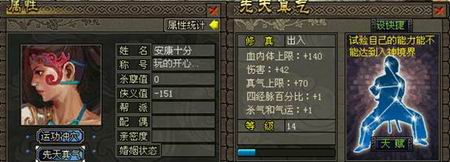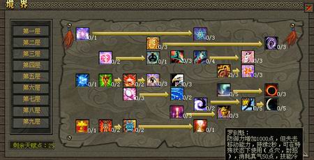 ③天赋加点:“天赋神功”是侠义道赋予侠客们的护体神功,玩家的先天真气每达到一个境界,就会获得境界对应的天赋点。行走江湖,混迹武林,必须必先学护体神功,当先天真气到10级以后,玩家可以通过点击属性—先天真气—天赋。进行天赋神功的技能激活。但一些特定的天赋神功满足一定的前置天赋满级才可激活。