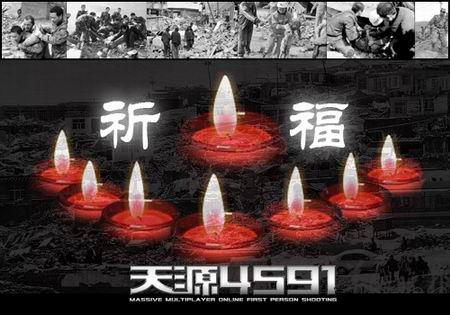 玉树震灾深深地牵动了每一个华夏儿女的心,《天源4591》的玩家在听闻这则噩耗后,纷纷在游戏中表达出对灾区人民的祝福。尽管众多玩家不能亲自远赴灾区协助救灾工作,但是依然有众多玩家通过《天源4591》通过网络传递自己的爱心。不少玩家在游戏中呼吁,在论坛中开贴建楼祈福,一句句发自内心的祝福通过互联网传达到中国每一个角落,处于天南地北的玩家在这一特殊的时刻抱着相同的感受为我们的同胞哀思。