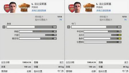除了波涅克时代曾经辉煌的波兰足球,现在的欧洲足坛上,也星星点点的散落着出自这个国家的足球人才。阿森纳的替补门将法比安斯基是其中一位。在足球网络游戏《FIFA online 2》中,法比安斯基的数值虽然不强,门将的数值也只有刚超过80的两项。但是作为25岁的年龄还非常年轻,他也是波兰足球未来的希望。